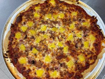 Marinara Sauce loaded with Mozzarella Cheese, Pineapple and Ham.