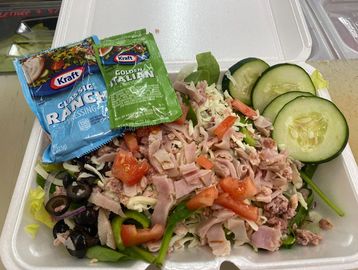 2 Meats, Choice of Veggies, Shredded Cheese, Choice of Dressing