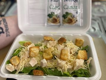 Romain Lettuce, Shredded Parmesan, Croutons, Caesar Dressings